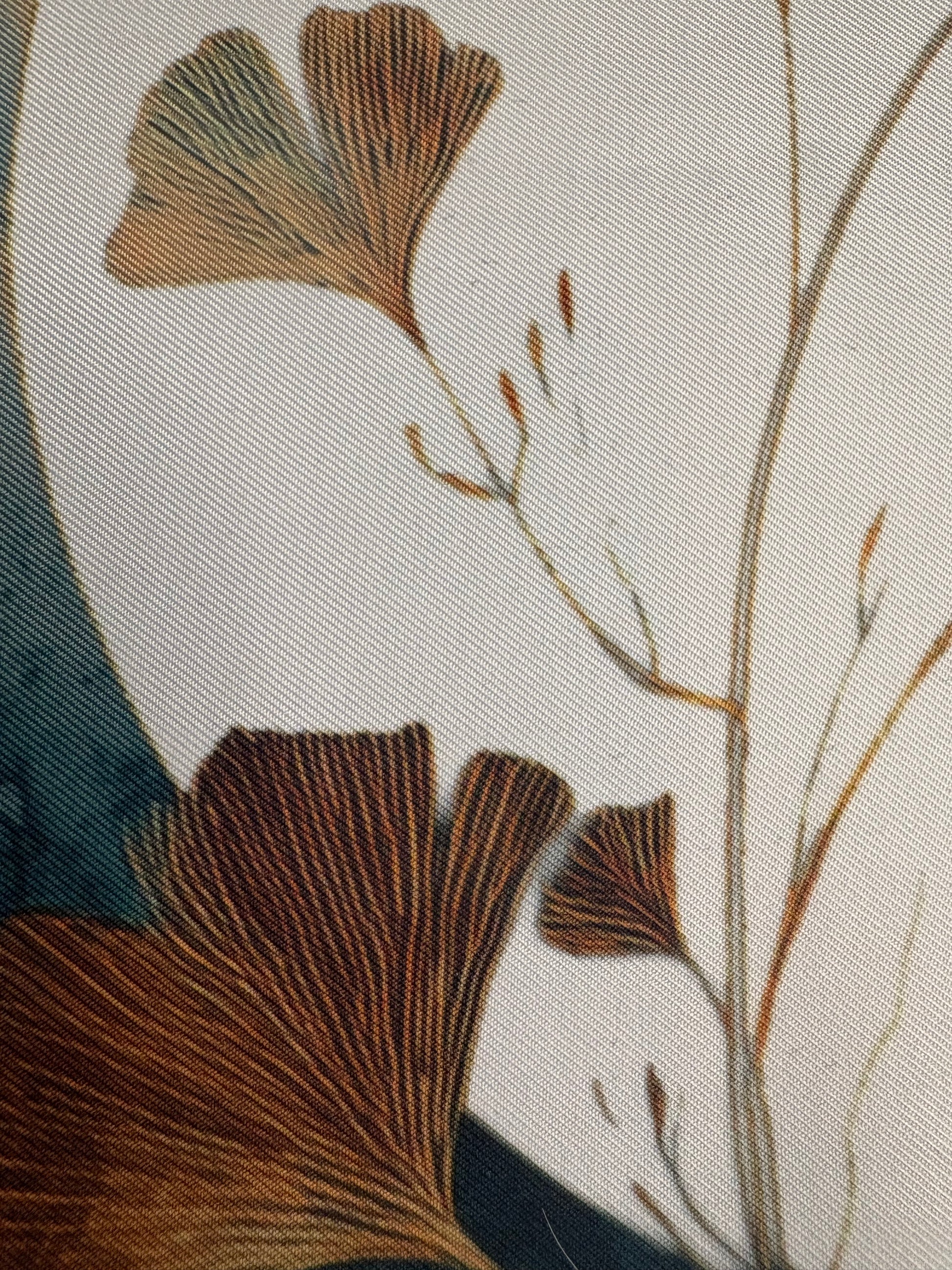 The design features a graceful crescent moon paired with delicate ginkgo leaves rising through its center. The moon has a softly textured, watercolor-like finish in deep teal and muted gold tones, while the ginkgo leaves appear in warm copper and bronze shades that give the piece an earthy, natural feel. Ginkgo leaves are often associated with resilience, longevity, and wisdom, making them a meaningful symbol alongside the moon’s connection to intuition and reflection. Together, the elements create a calm, balanced composition that feels both botanical and quietly mystical—an elegant visual companion for tarot readings and contemplative practice. ✨
