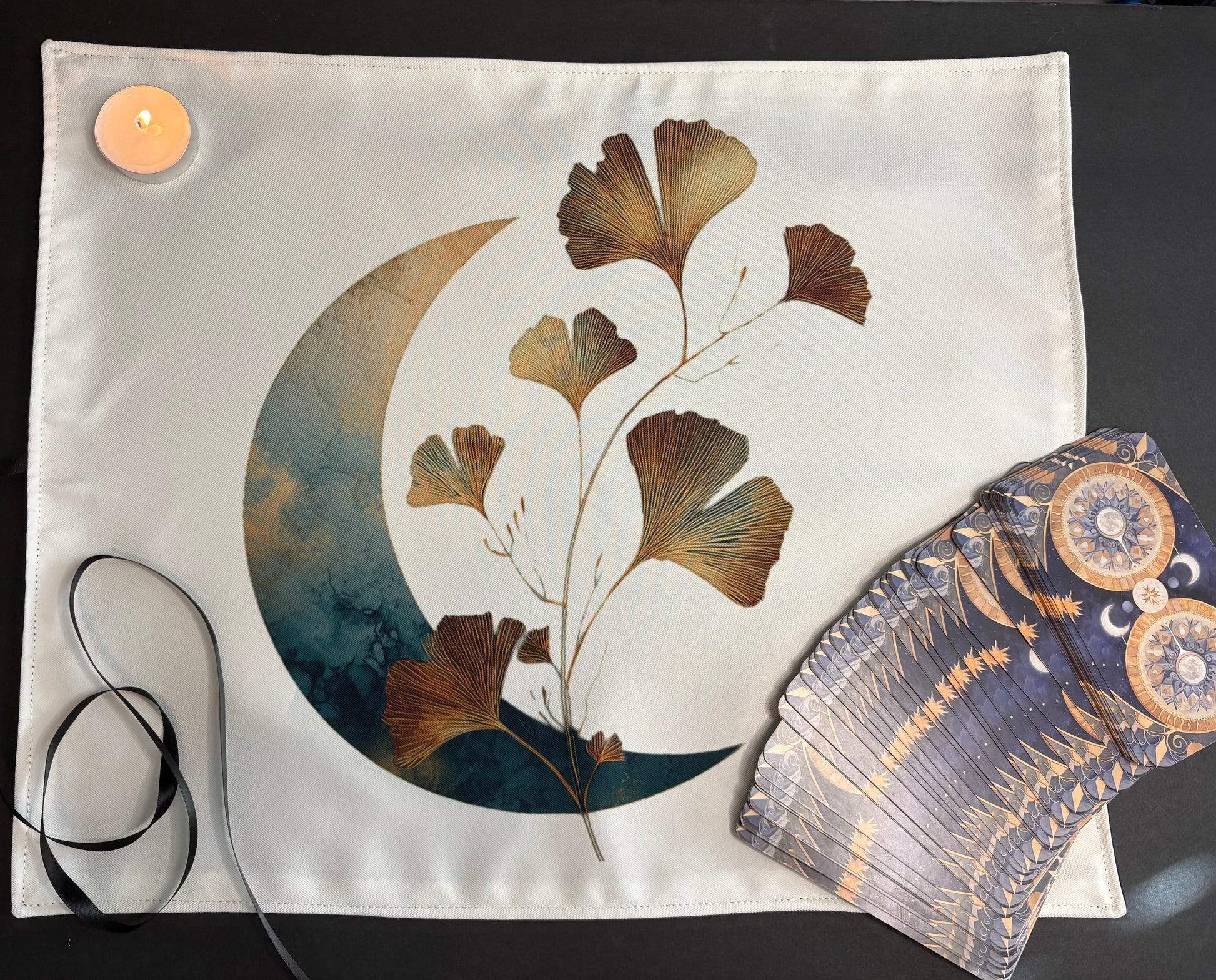 Ginkgo Moon Tarot Deck Wrap – Handmade Tarot & Oracle Card Wrap & Reading Cloth 🌙🍃