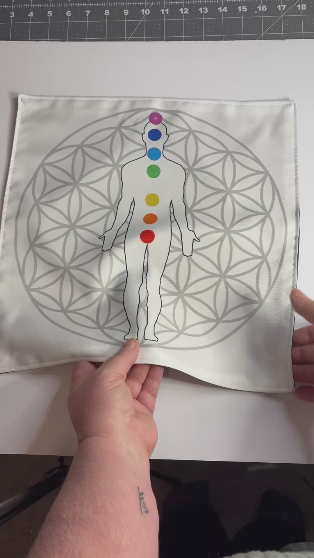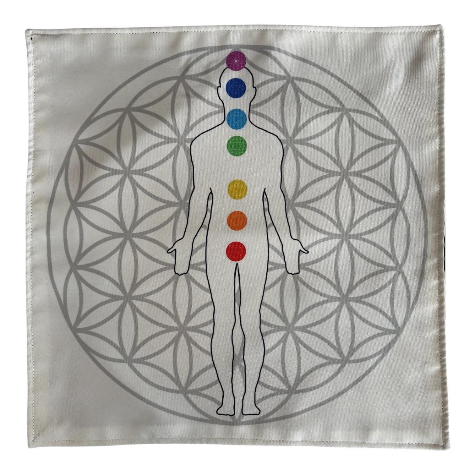 Handmade Reiki Healing Mat — Flower of Life and Root to Crown Chakra Visualization Cloth for Meditation & Energy Alignment