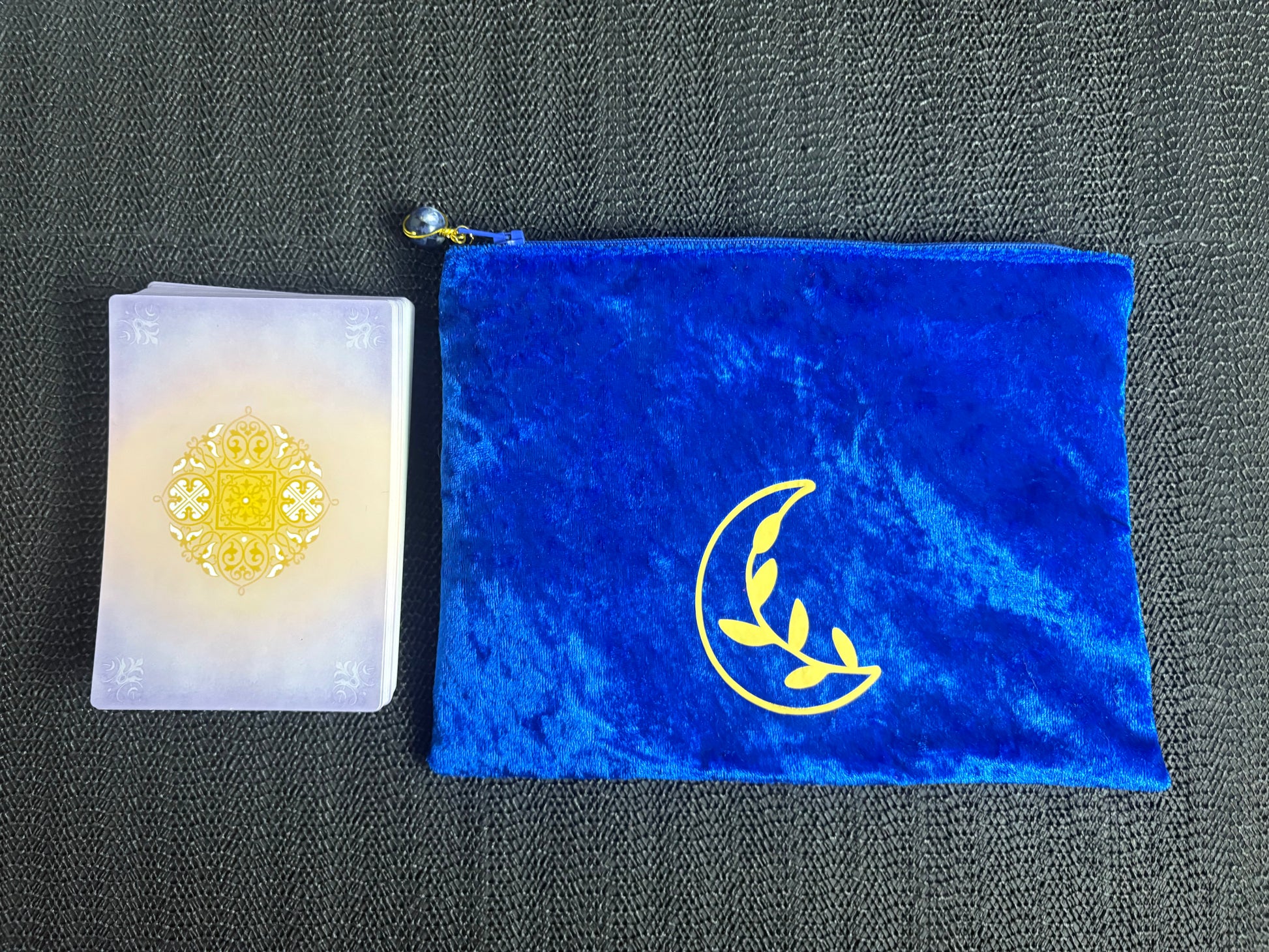 This mid-size pouch brings together the best elements of the larger zipper pouch and the smaller drawstring style, offering a balanced option for everyday use. It comfortably fits a standard tarot deck along with a few smaller ritual tools or a reading mat. The smooth-gliding zipper keeps everything secure, with your cards and tools safely tucked inside between readings or while traveling.
