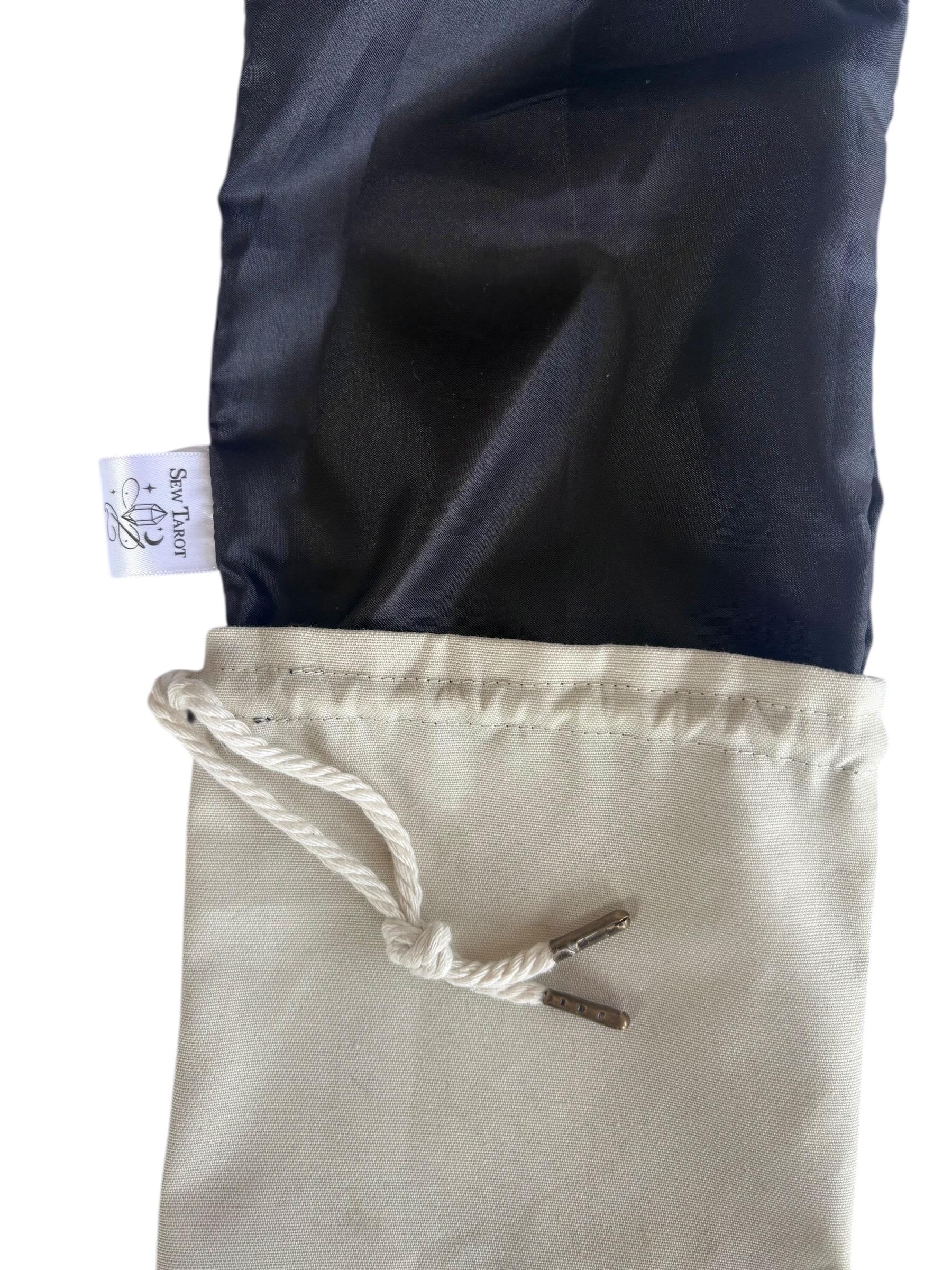 Made with a smooth, durable poly-cotton exterior and a black sateen interior, the pouch allows rune stones, charms, or bones to glide freely without catching. The soft, flexible structure protects items during storage and travel while feeling natural and balanced in the hand. Each pouch is hand sewn one at a time in my home studio and made to be used as part of an ongoing practice.